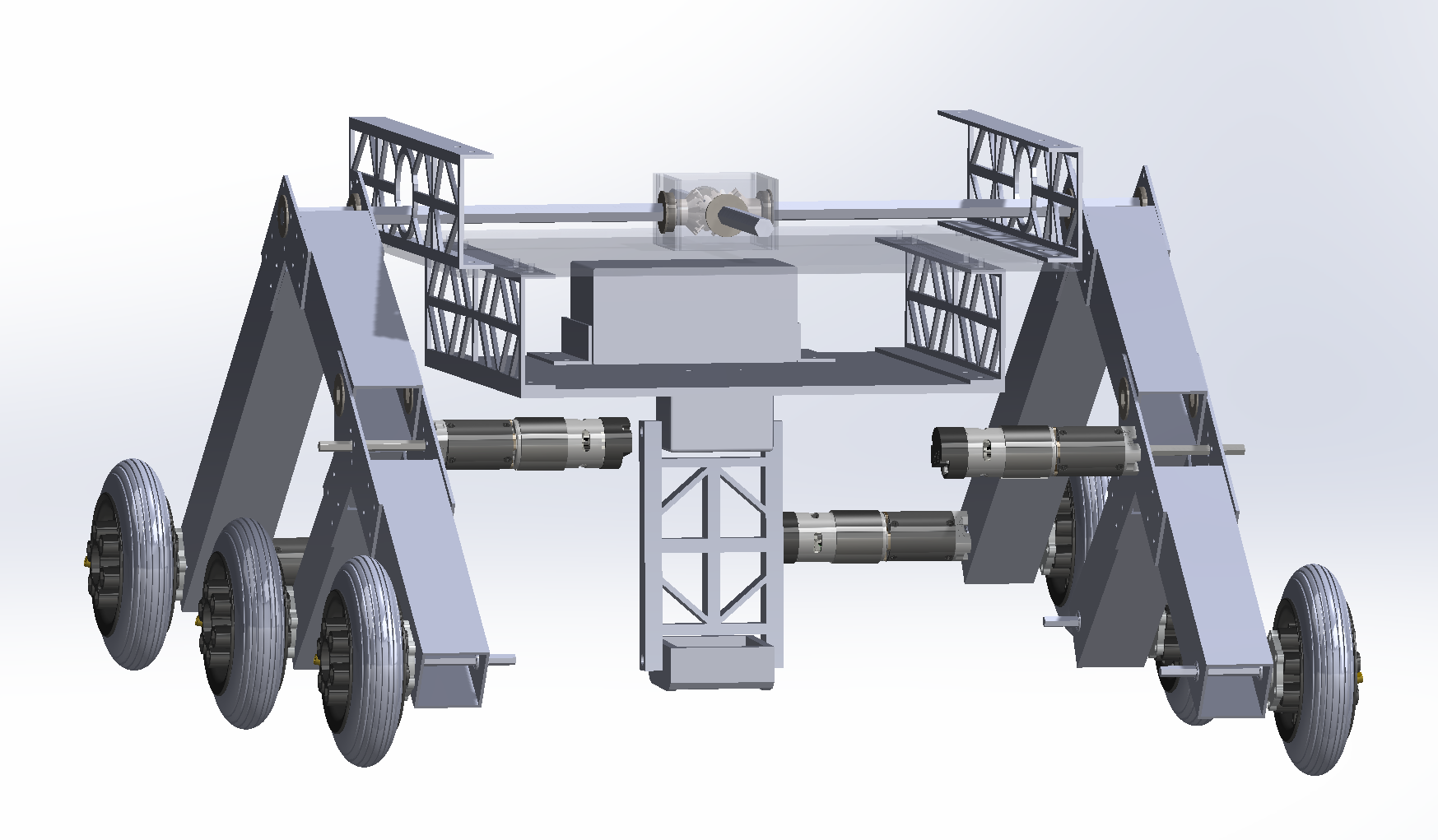 I designed and iterated on a rocker-bogie rover chassis in